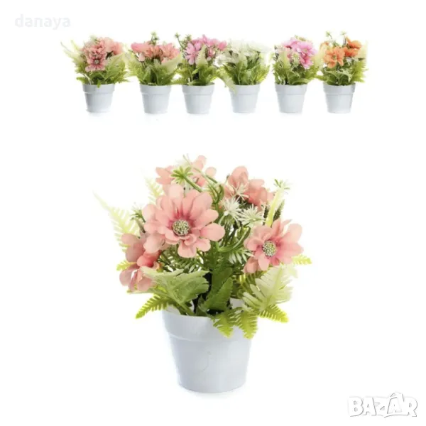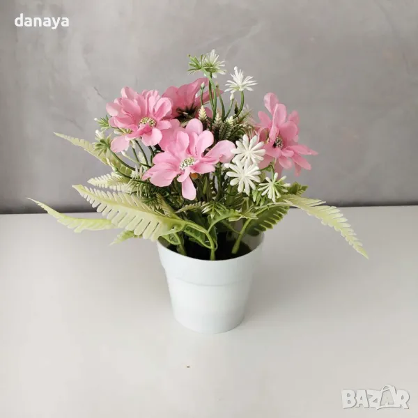 Внесете свежест и настроение в дома или офиса с тези елегантни изкуствени цветя – маргаритки в бяла саксия. Нежните розови или бели цветя придават романтично излъчване и стилна нотка на всяко пространство.
