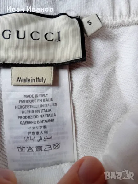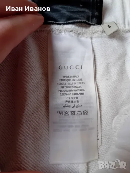 Оригинални къси панталони Gucci в перфектно състояние. Не са слагани никога. Всички етикети и серийни номера са налични. Произведени са в Италия, откъде са й купени(от бутик на марката). Размер S.