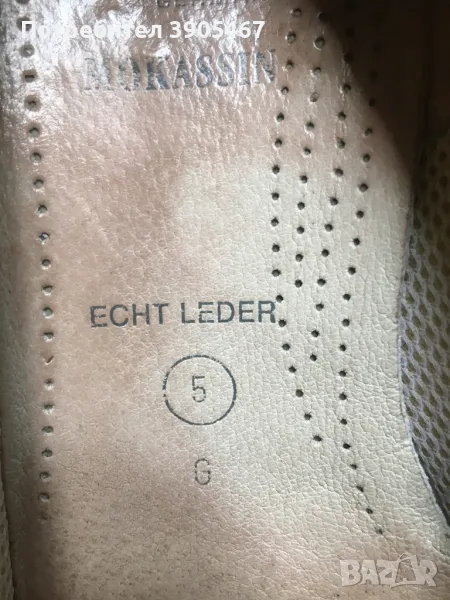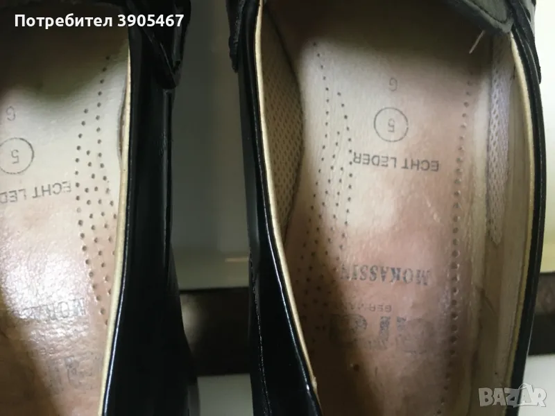 Обувките са от естествена кожа, MADE IN GERMANY. Отдолу са маркирани с числото 5 /което значи №38/. Марка MOKASSIN. Високо качество. Много добро състояние. Дължина на стелката 23,5 см.