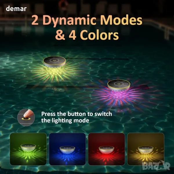 PChero Соларни осветителни тела за езерце, 2 броя RGB плаващи осветителни тела, IPX8