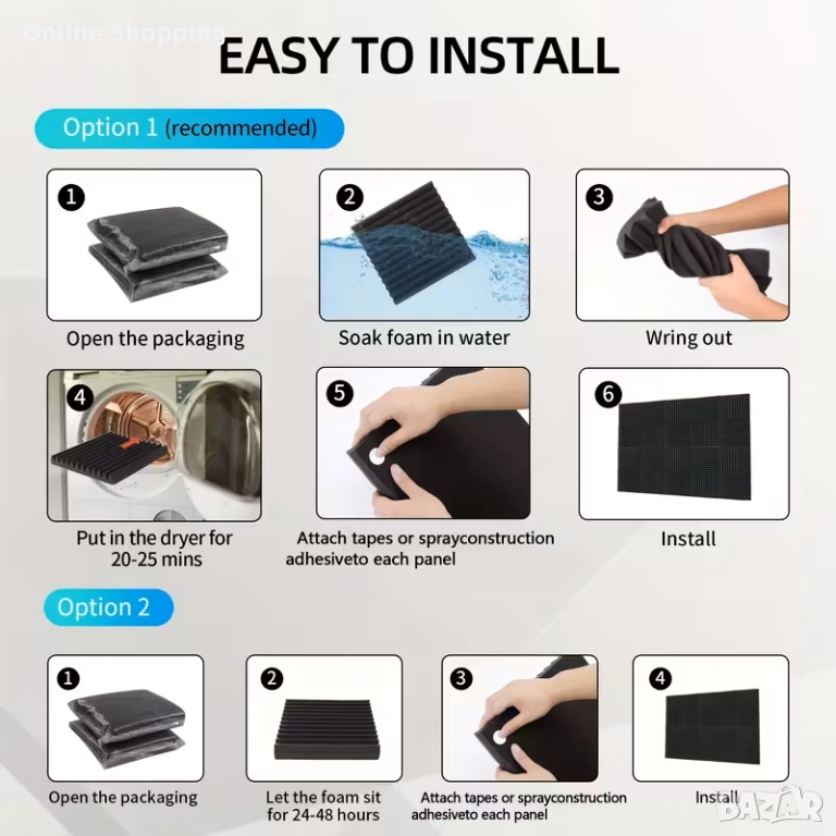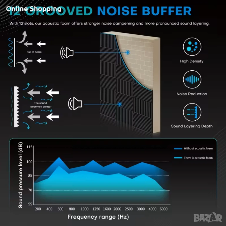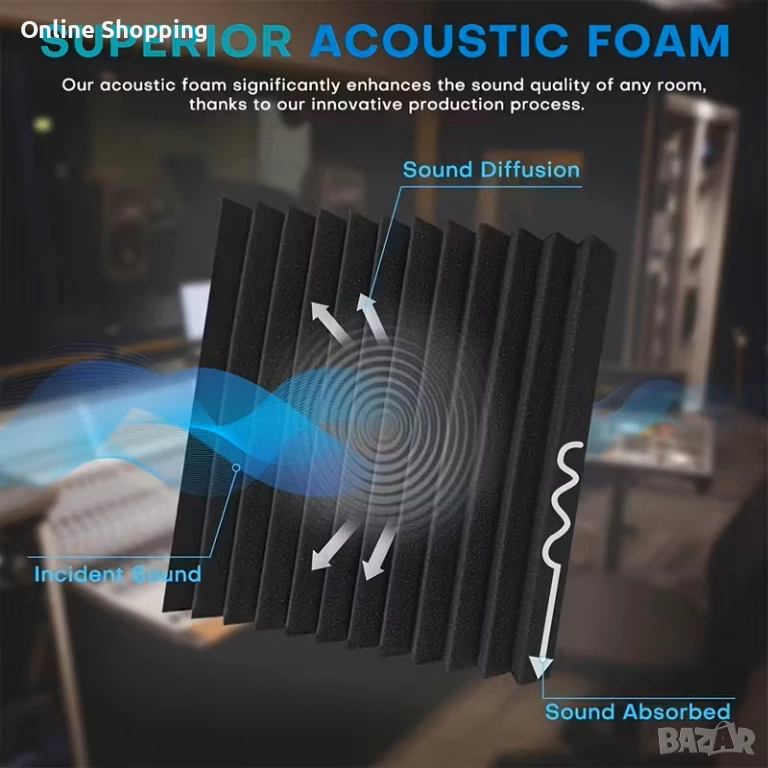 - В опаковката има 12 плочи /панела, изработени от много качествена звукопоглъщаща акустична гъба .