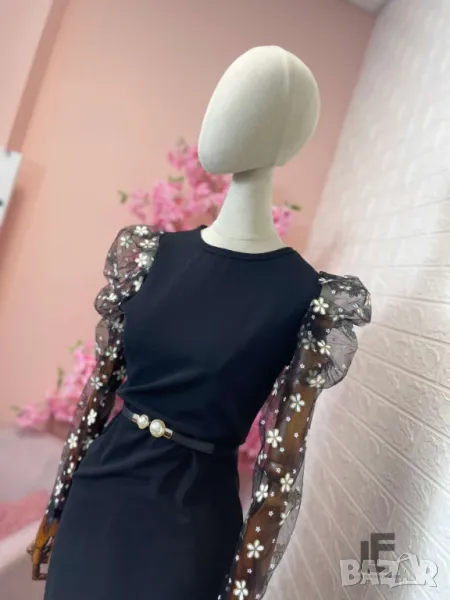 Кройка: Кройката е слим, права със супер ефектни дантелени ръкави