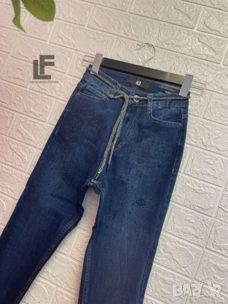 Кройка: Кройката е секси слим със средна към висока талия, по тялото, декорирана с камъчета