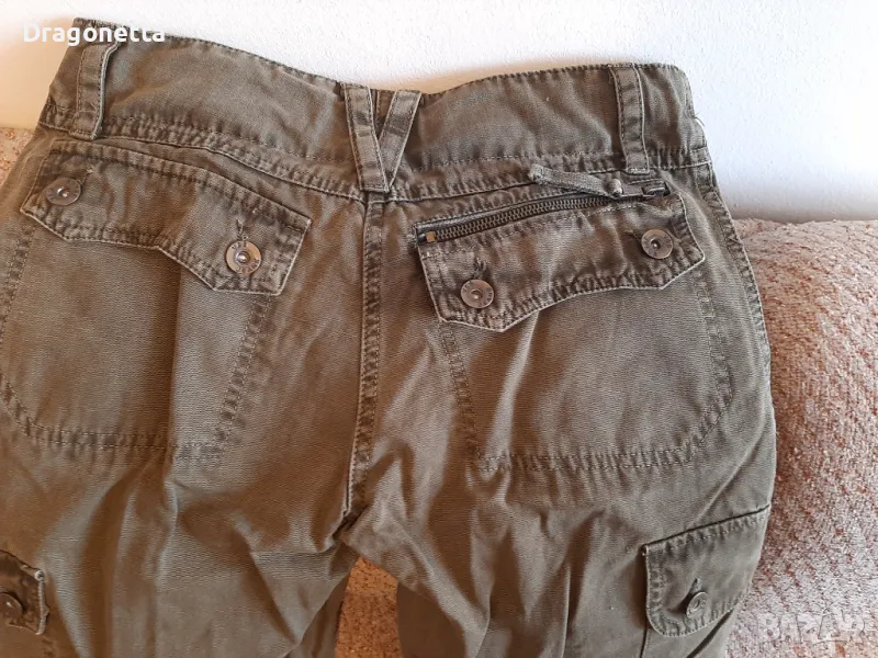 Тъмнозелени, с функционални джобове 6 бр, размери:70 см талия, ханш 90 см, дължина 100 см