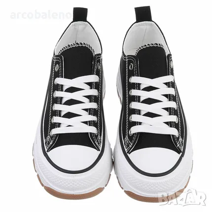 Дамските маратонки на платформа са перфектна комбинация от стил и комфорт. Изработени от черен текстилен материал, те осигуряват елегантен и универсален вид. Дизайнът с връзки гарантира перфектно прилягане, а наличието на платформа добавя характер и модерност към обувките. Те са перфектни като елемент от ежедневния гардероб, съчетавайки се както със спортен, така и с ежедневен стил. Благодарение на тях ще създадете модни и удобни комплекти за различни поводи.