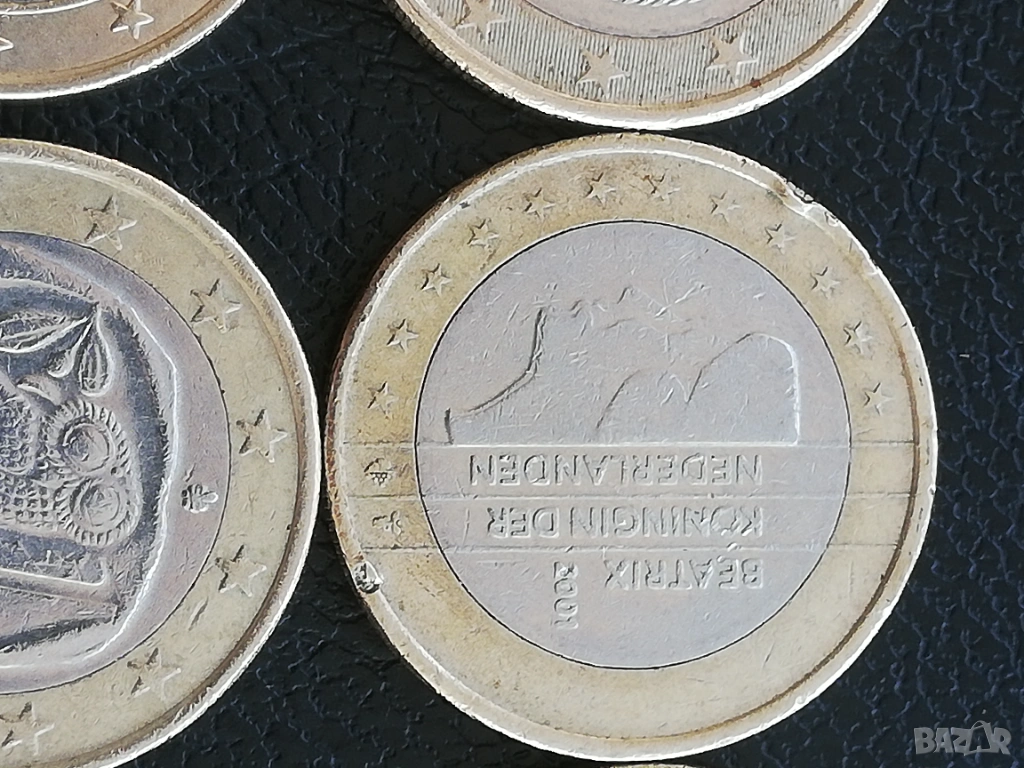 лот от 6 монети от 1 евро различни държави от първите години. монетите са както следват от Испания -2002г.;от Франция-1999г.;от Гърция-2007 г.;от Германия-2002 г. буква F;от Холандия-2001 г.;от Австрия-2008 г.;цена за лота 12 евро.единични бройки по договаряне. изпращам само по еконт.