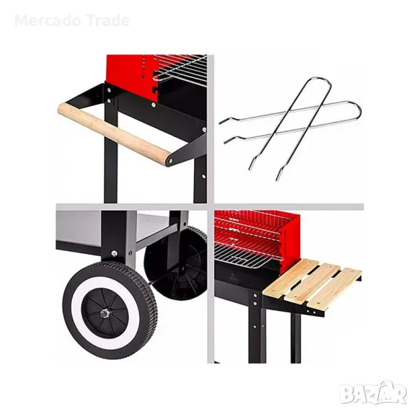 Преносимо барбекю Mercado Trade, За дървени въглища, С колелца Това е метална конструкция, боядисана с електростатична боя, издръжлива и преносима благодарение на 2-те колела за движение.