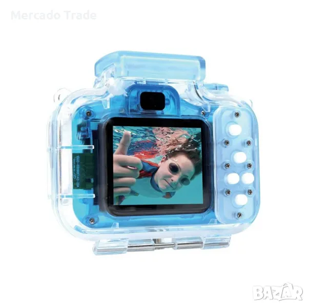 Детски фотоапарат Mercado Trade, Водоустойчив, 5 игри, Син