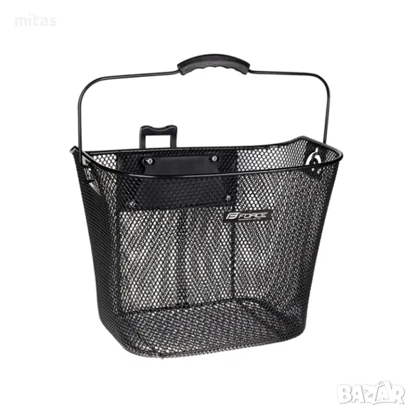Кошница за кормило на велосипед FORCE KLICK, Мобилна, Метална, Черна