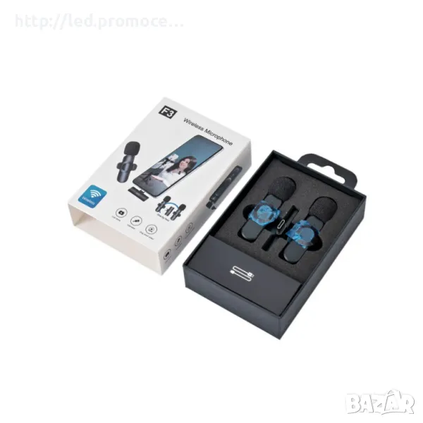 - Комплект от 2 броя мини безжични микрофони