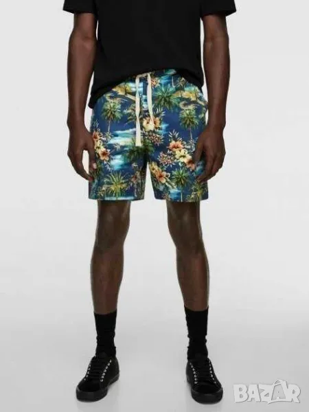 Мъжки плажни шорти с флорална апликация Zara, 97% памук, 3% еластан, L, снимка 1 - Бански - 50437396 1/1