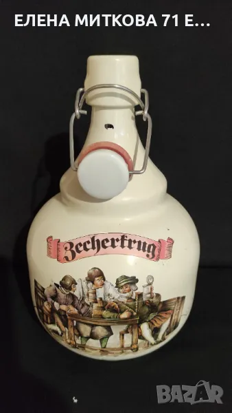 Винтидж 2-литрова немска дамаджана с дръжка и порцеланова запушалка → Обява 50437526