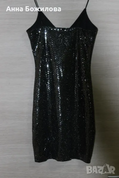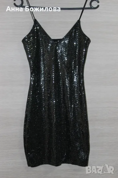2. Черно-сребриста бляскава/ лъскава къса рокля с паети H&M DIVIDED - размер XS; V-образно деколте; малко от паетите са паднали, но не се забелязва изобщо, както се вижда на снимките - 8€