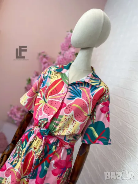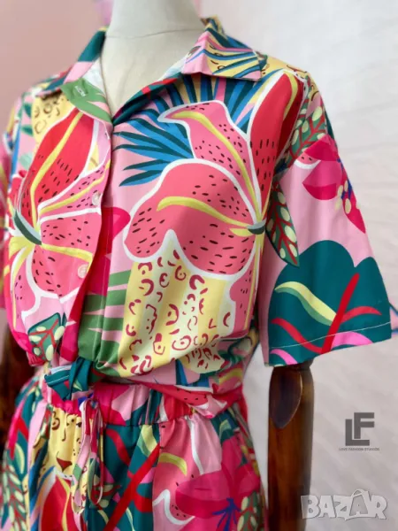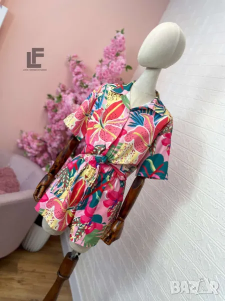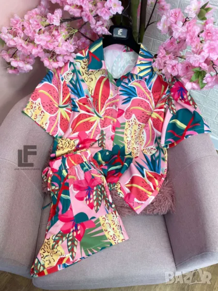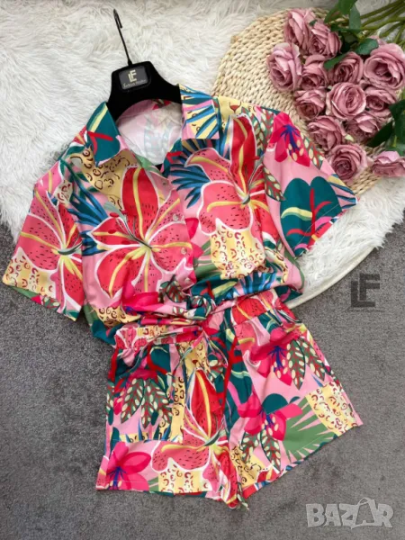 Кройка: Кройката на ризата е свободна, тип OVERSIZE. Кройката на панталонките е свободна с ластик на кръста, висока талия и коригиращи връзки