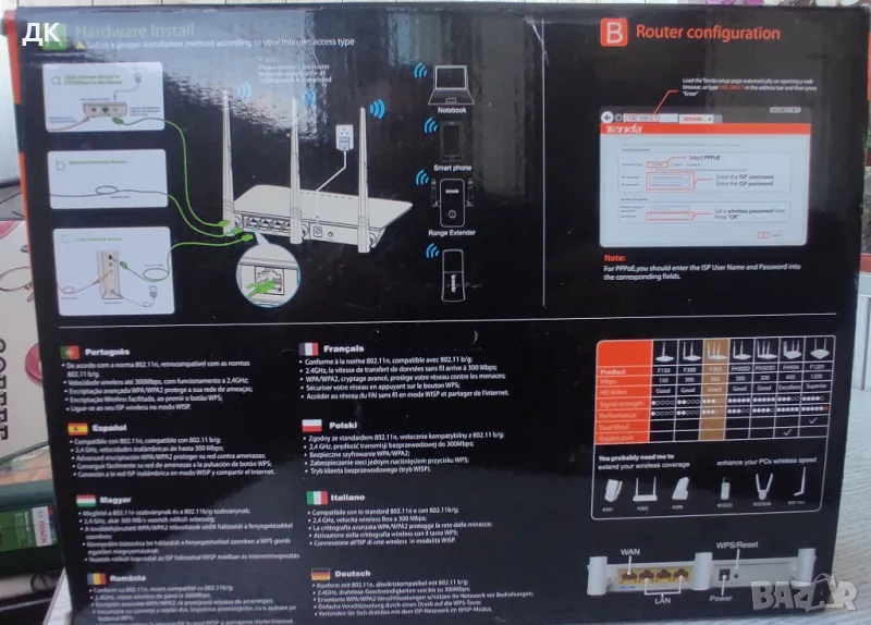N300 Wireless-N Broadband Router, 3x5dbi fixed antennas, 1x10/100Mbps WAN Port, 3x10/100Mbps LAN ports; 2.4GHZ, DHCP, PPPoE, Static IP, PPTP, L2TP, WPS, WISP Поддържани протоколи за обмен на данни: Fast Ethernet/Ethernet IEEE 802.11b/g/n LAN архитектура: 10Base-T/100Base-TX Wi-Fi Протокол за маршрутизация: Static Routing Комутационен протокол: Ethernet Метод на комутация: Store and Forward Скорост на сериен трансфер на данните: 300 Mbps Поддържан LAN протокол: DDNS QoS Индикатор за статус: Activity Status Честотен диапазон: 2.4 GHz Брой канали: 11 Алгоритъм за криптиране: 128-bit WEP 64-bit WEP WPA-PSK WPA2-PSK Съвместимост с мрежови стандарти: IEEE 802.3 IEEE 802.3u Мрежови характеристики: DHCP Client Built-in DHCP Server Built-in DMZ Support MDI/MDI-X switch WAN-Dynamic IP WAN-PPPoE WAN-Static IP Port Mapping Multiple Input Multiple Output (MIMO) Web Interface MAC address filtering PPTP Support L2TP Support Wireless Distribution System (WDS) 2T2R Антена: Външен Разположение на устройството: Външен Сертификати: CE, FCC Мрежови 10Base-T/100Base-TX Брой портове: 3 Мрежови 10Base-T/100Base-TX тип порт конектор: RJ-45 Брой портове WAN Ethernet 10Base-T/100Base-T: 1 Тип конектор на WAN Ethernet 10Base-T/100Base-T порта: RJ-45 Разположение на захранването: Външен Максимална входна честота: 60 Hz Минимална входна честота: 50 Hz Максимално входно напрежение: 240 V Минимално входно напрежение: 100 V