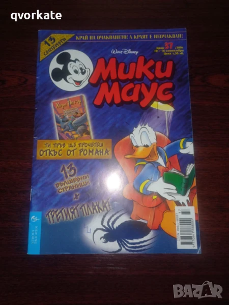СНИМКА № 14 Списание Мики Маус бр.37/2001г.,изд.Егмонт България,меки корици,състояние отлично.В кръстословицата има попълнени две думи с оригиналният плакат към списанието.-12.00лв.