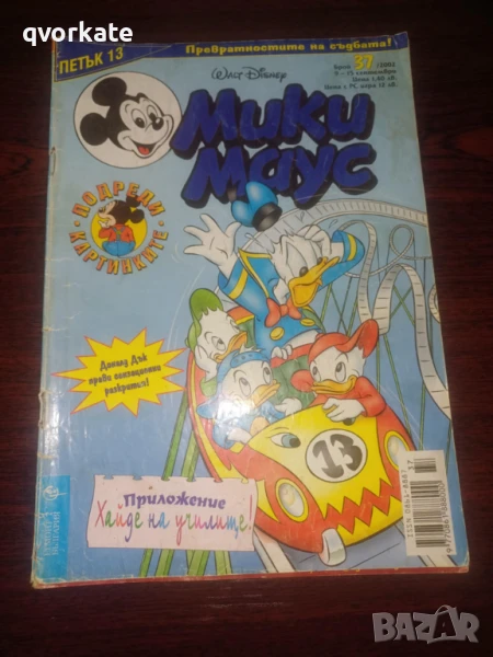 СНИМКА № 15 Списание Мики Маус бр.37/2002г.,изд.Егмонт България,меки корици,състояние:скъсана корица-1см.,захабени корици,пожълтяване.-6.00лв.