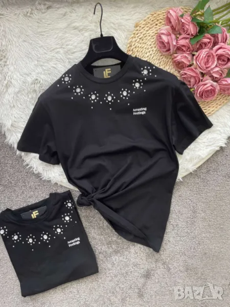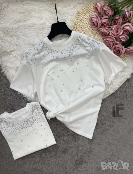Кройка: Кройката свободна, права, декорирана с камъчета, тип OVERSIZE