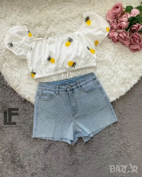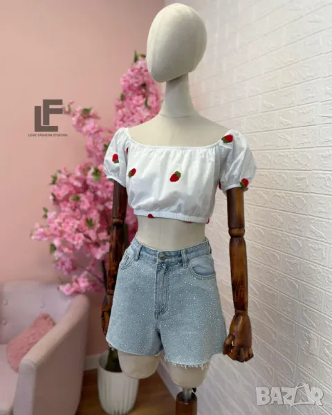 Кройка: Кройката е скъсена, с ефектен гръб и буфан ръкави