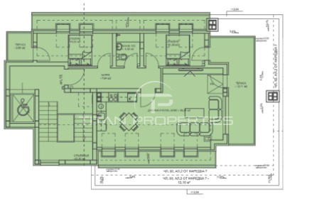 Апартаментът е ситуиран на 5-ти жилищен етаж и разполага с обща площ от 135 кв.м., разгърната в следното практично разпределение: входно антре, две спални, хол с кухненски бокс, две тераси, баня с тоалетна. Към имота има възможност за закупуване на паркомясто в размер на 10 000 евро, както и избено помещение за 2000 евро.