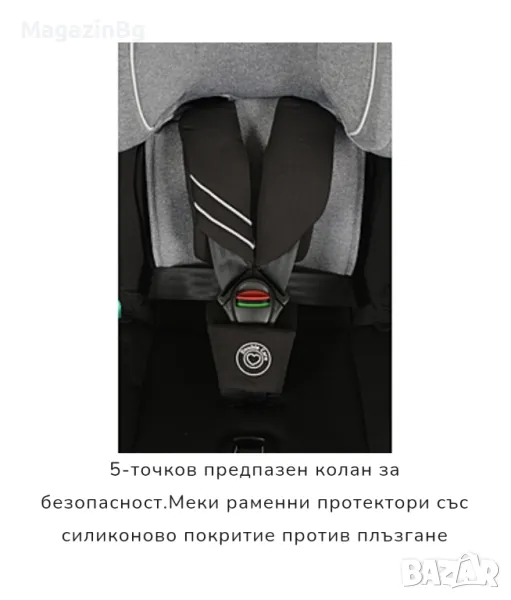 Защитна система: 5 - точков предпазен колан с меки подплънки•Isofix система за безопасност