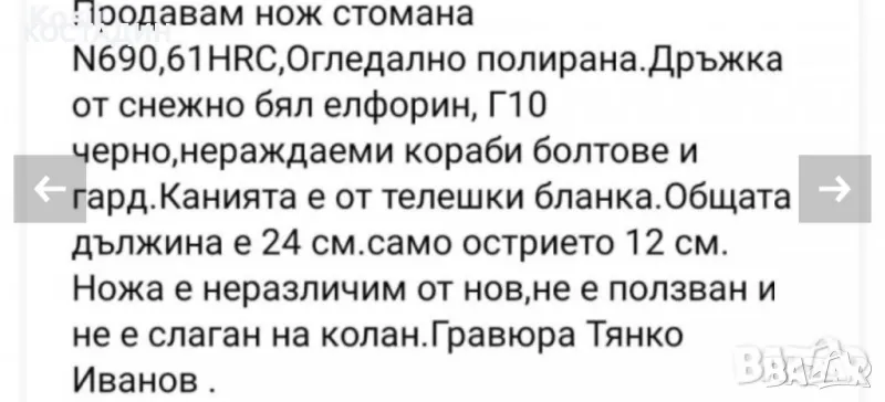 Продава се ръчно изработен ловен нож → Обява 50440573
