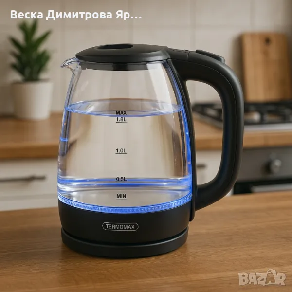 Стъклена електрическа кана Termomax, 1500W, 1.8 л. → Обява 50440697
