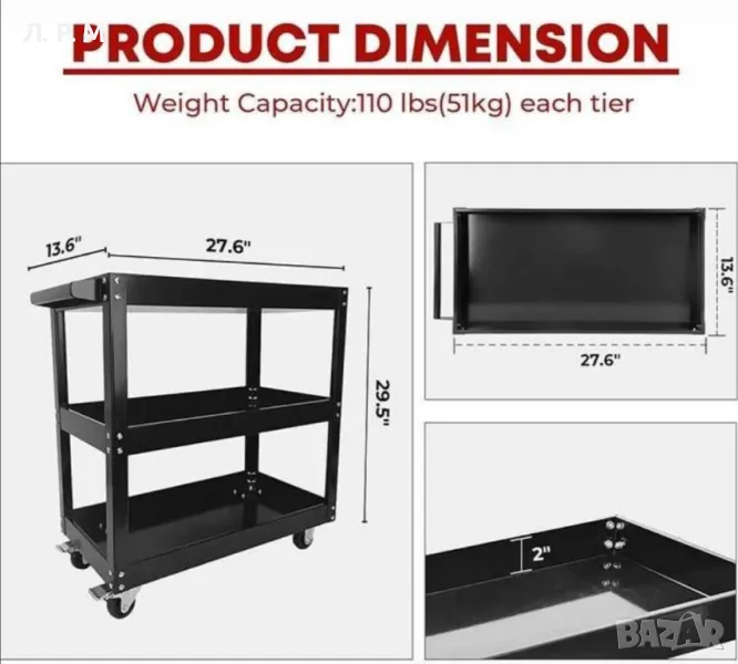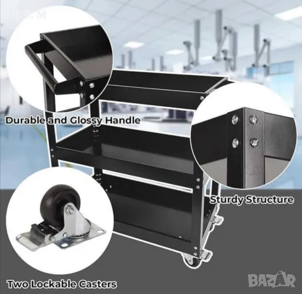 Количка за инструменти с 3 рафта черна, снимка 1 - Шкафове и рафтове - 50440944 Количка за инструменти с 3 рафта черна, снимка 2 - Шкафове и рафтове - 50440944 Количка за инструменти с 3 рафта черна, снимка 3 - Шкафове и рафтове - 50440944 Количка за инструменти с 3 рафта черна, снимка 4 - Шкафове и рафтове - 50440944 Количка за инструменти с 3 рафта черна, снимка 5 - Шкафове и рафтове - 50440944 1/5