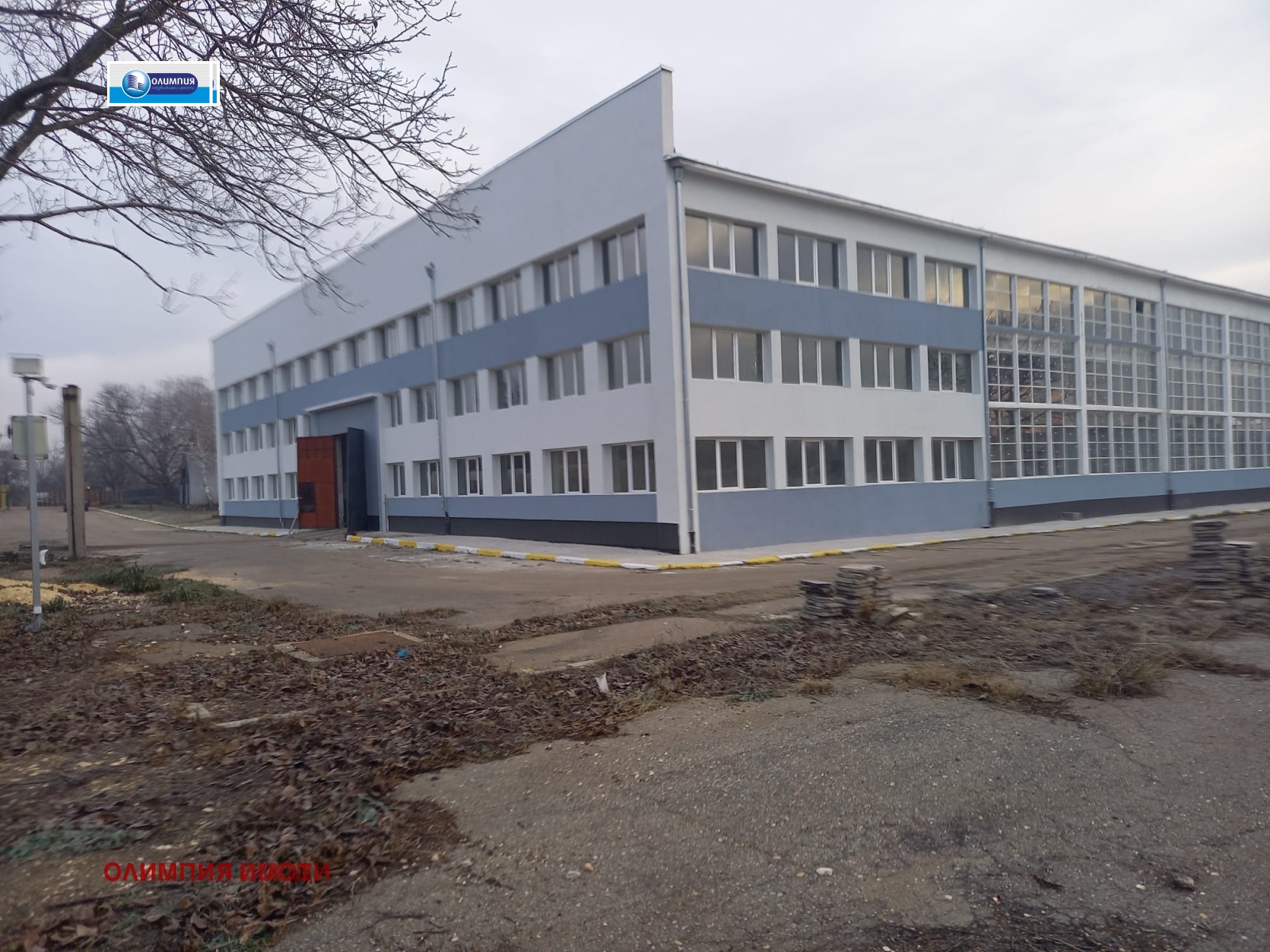 стоманобетонно хале високо 9 метра, след ремонт, собствен трафопост, 600 кв.м. администрация, прилежащ терен 17500 кв.м. и две холандски халета по 300 кв.м.