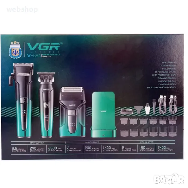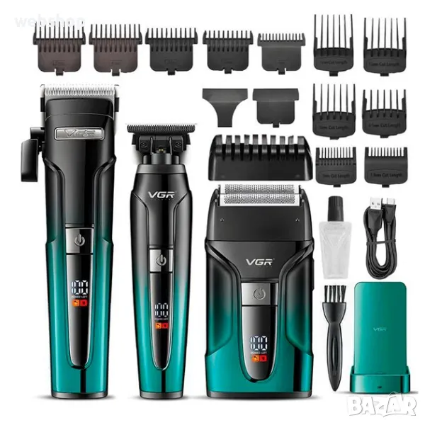 VGR 3 в 1 комплект V-694 BLUE безжична машинка за подстригване, тример и електрическа самобръсначка