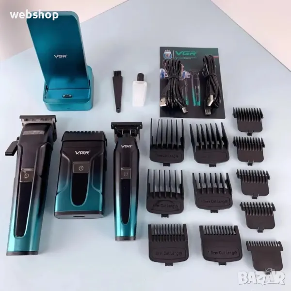 Комплект безжична машинка за подстригване, тример и електрическа самобръсначка VGR 3 в 1 V-694 BLUE