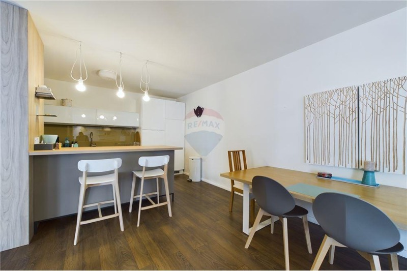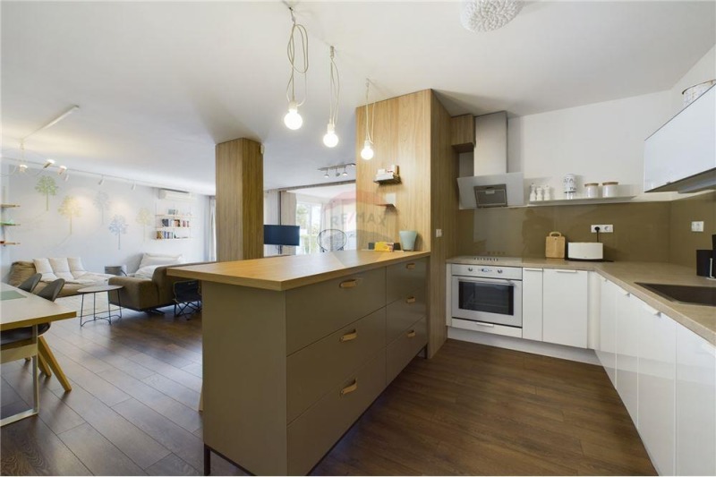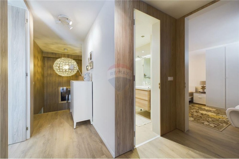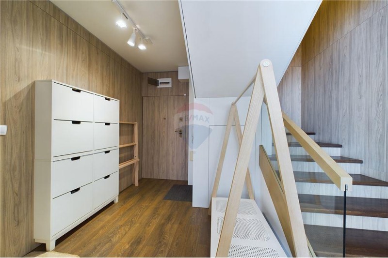 Този напълно обзаведен дизайнерски мезонет съчетава както спокойствието и тишината, така и близостта до всички необходими удобства и комуникации, предлагащ градският живот. Ситуиран е в тухлена сграда от 2010г. с контрол на достъпа, видео наблюдение и асансьор. Имотът е с обща площ от 216 кв.м., функционално разпределени на две нива. Разпределението е както следва: