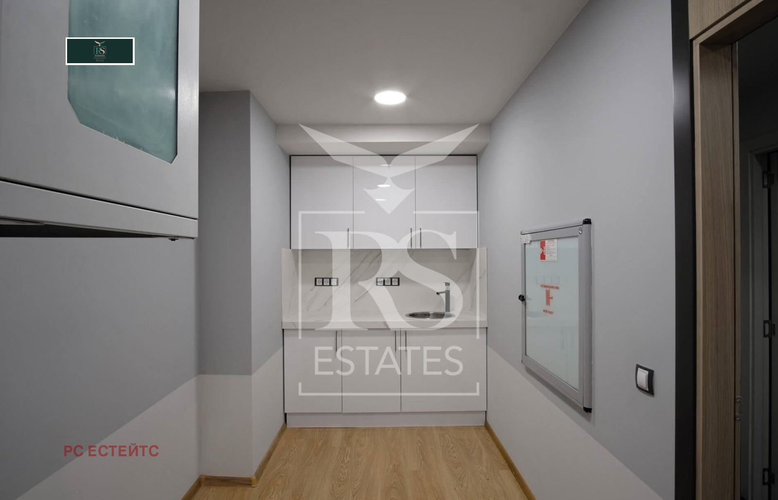 Офиса е тип Open Space , като има оборудвана кухня, три тоалетни, складово помещение.