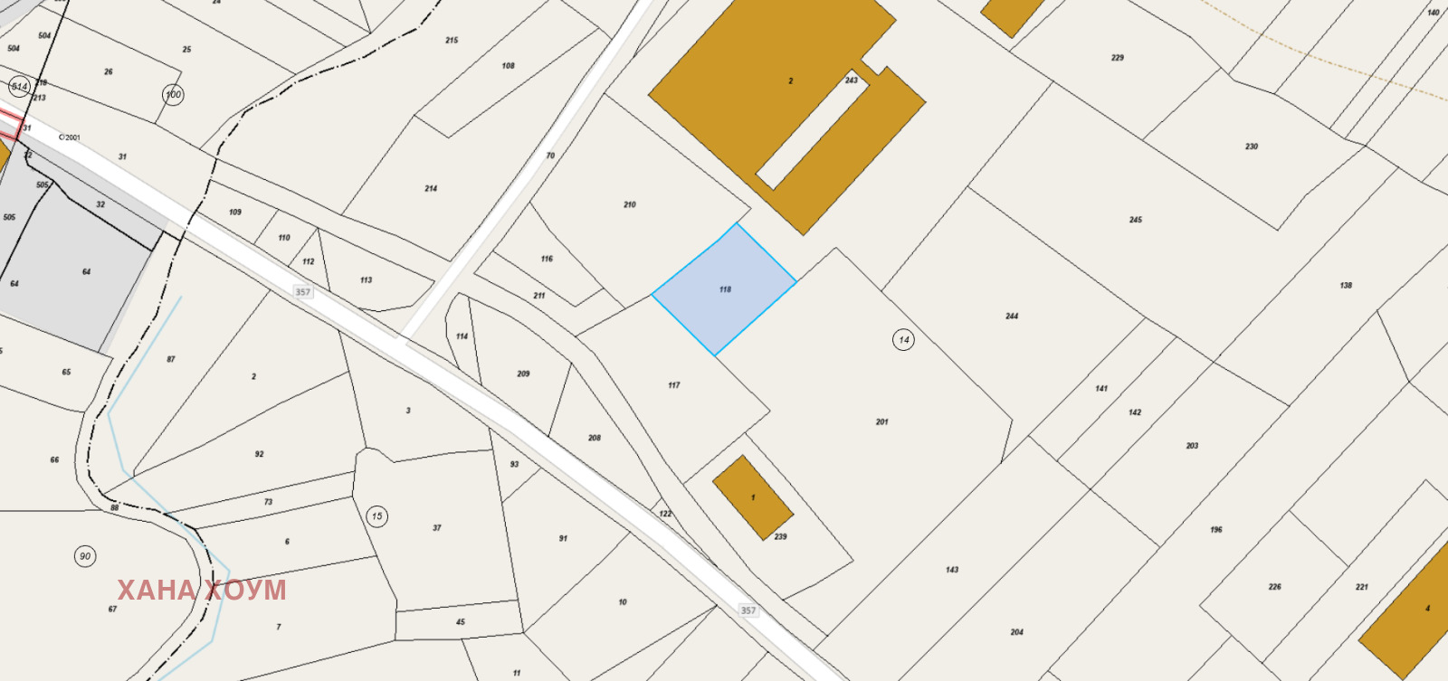 - Лице на главен път: 39 м.