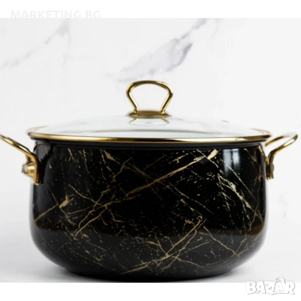 Тенджера Goldmann 24x15см.\6.2л.. Емайл. Индукция. Черен/Старо злато