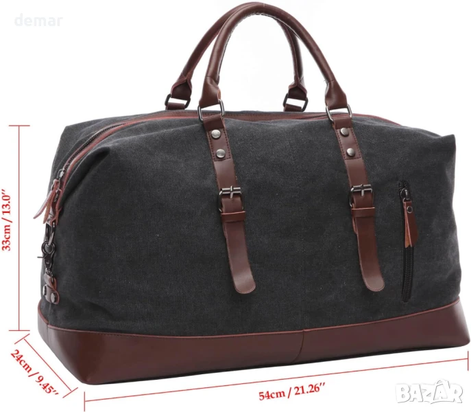 Просторна чанта с обем 40–50 литра, подходяща за пътуване, фитнес или употреба на открито, с универсален дизайн, който позволява носене в ръка, на рамо или през рамо с помощта на регулируеми, подвижни презрамки. Изработена от издръжлив плат от 16 унции (473 г) с детайли от PU кожа и метален обков за здравина и стил. Включва просторно основно отделение, вътрешен джоб и множество външни джобове с цип за лесна организация. Въпреки здравата си конструкция, тя остава лека - само 1,5 кг, което я прави идеална както за ежедневна, така и за продължителна употреба.