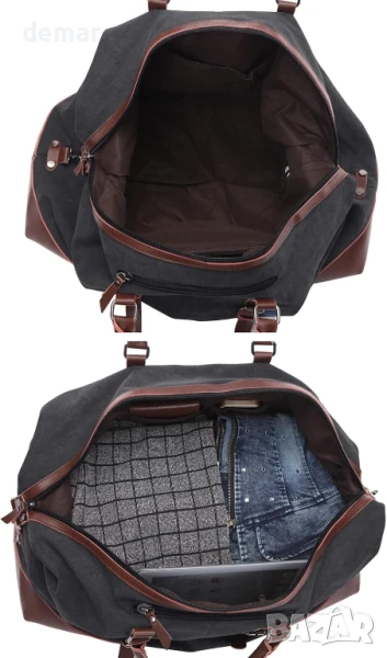 Платнена чанта за пътуване с голям капацитет 40-50 литра, черна