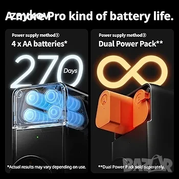 Професионален живот на батерията: Захранва се от 4 x 1.5V AA батерии (включени в комплекта), което ви позволява да издържате до 6-9 месеца (при употреба). Може да се закупи и SwitchBot Dual Power Pack, който удължава живота до 9-12 месеца. (Моля, сменете батериите, когато получите известия за изтощени батерии)