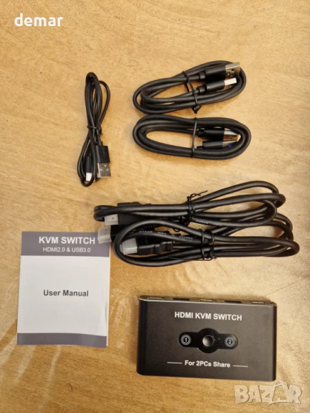 KVM превключвател 1 монитор 2 компютъра, HDMI 4K@60Hz, 4 порта USB 3.0