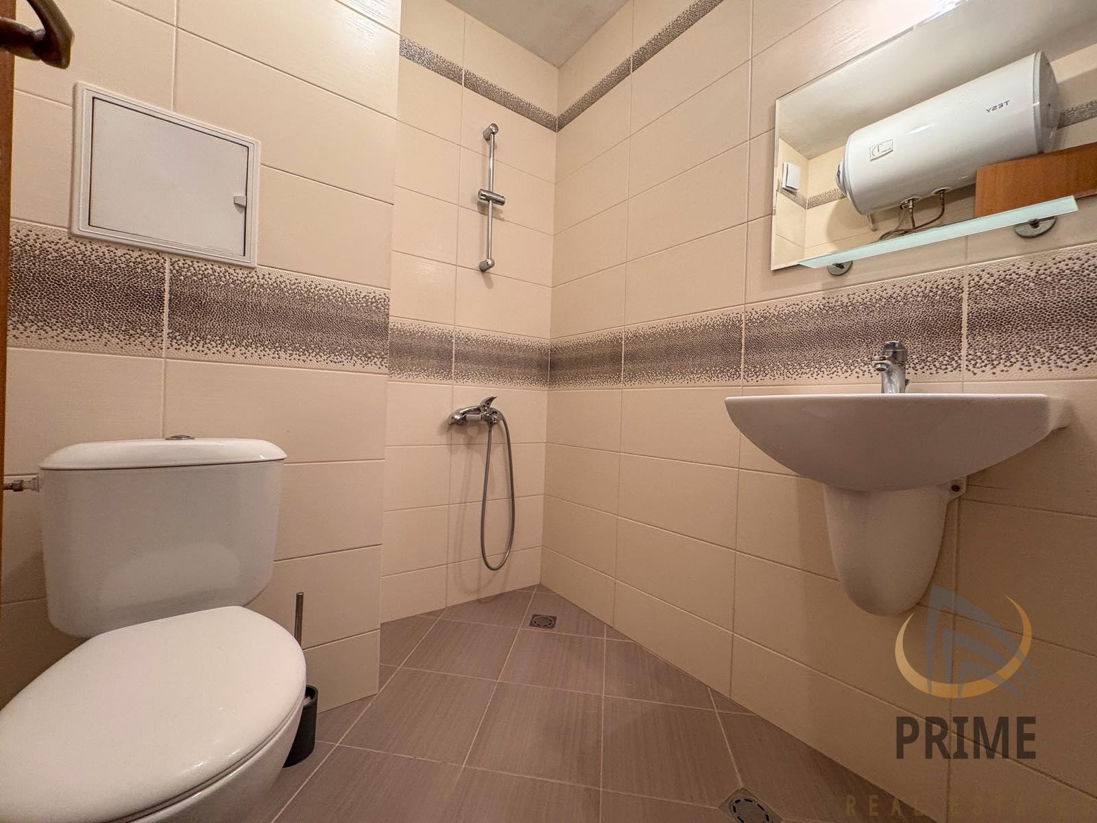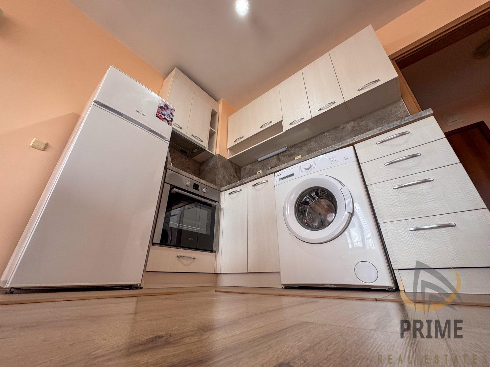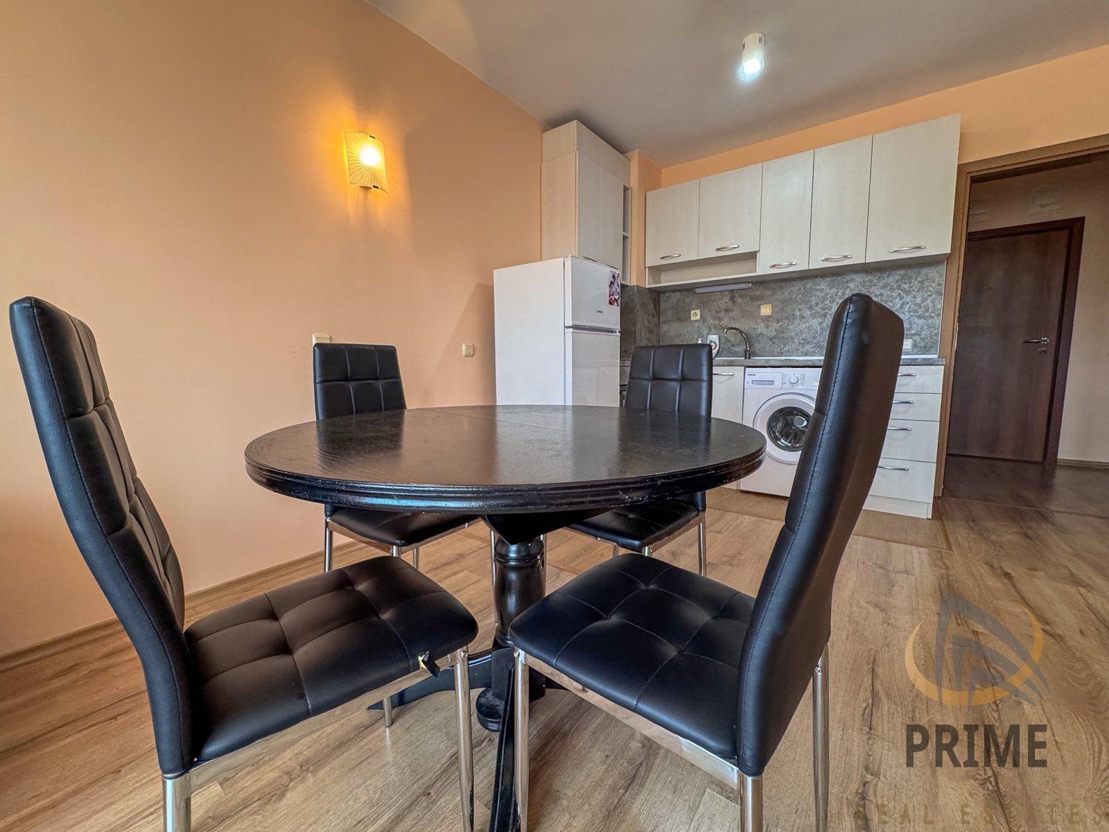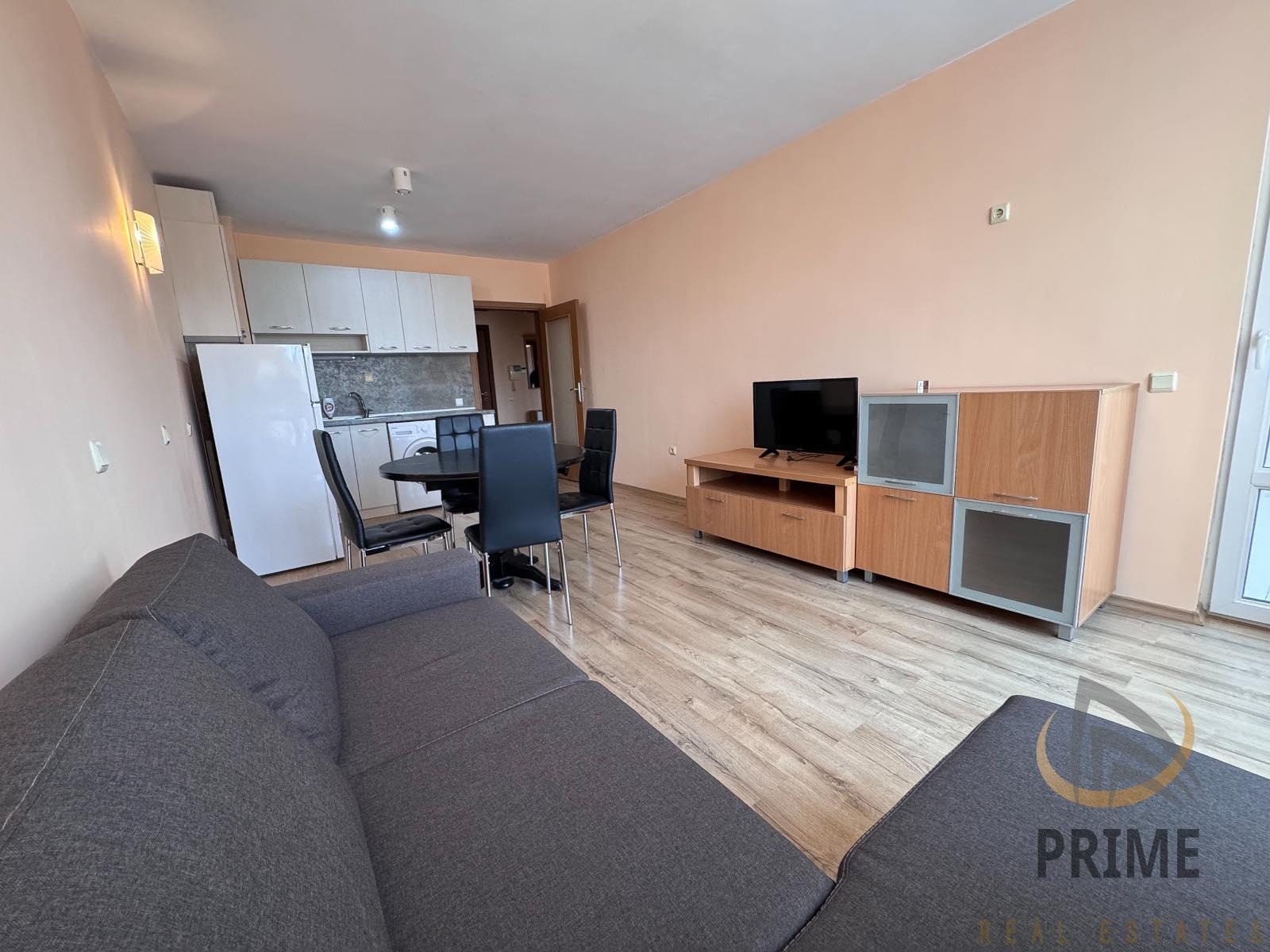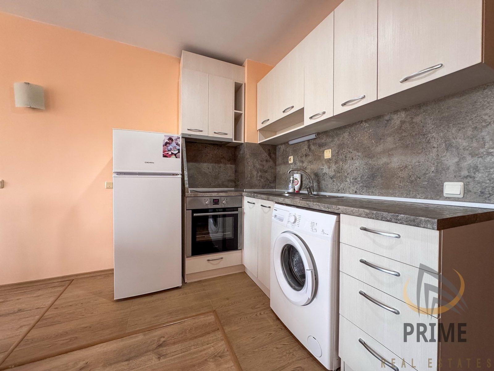 Състои се от входно антре, хол с кухня, склад/килер, спалня, баня с тоалетна и тераса. Обзаведен е с качествени мебели и електроуреди. Отоплява се с климатици! С южно изложение.