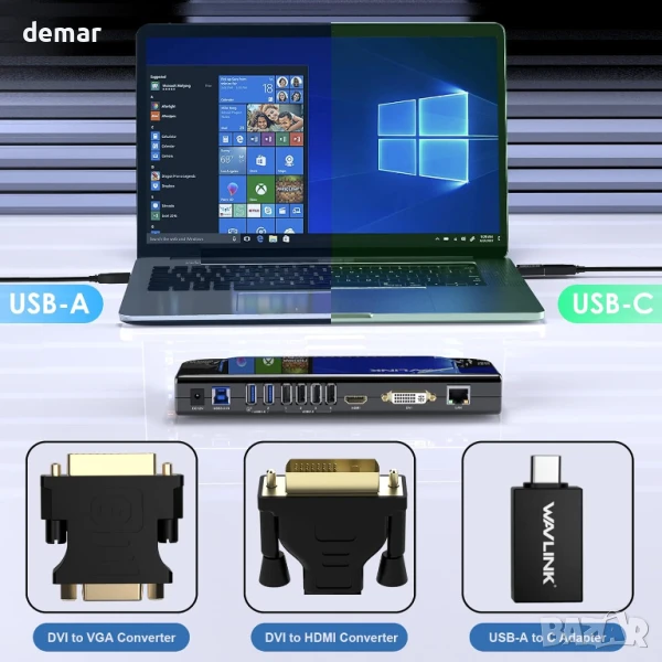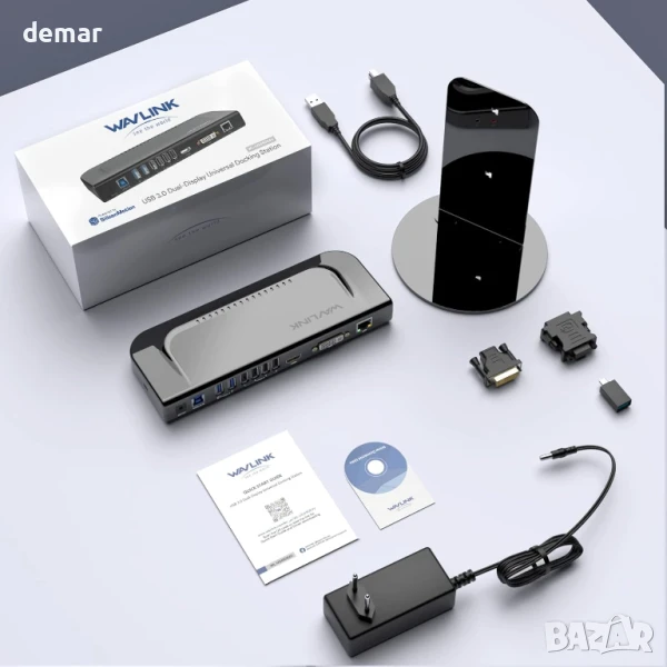 Докинг станция за лаптоп WAVLINK, за два монитора, HDMI+DVI/VGA/HDMI, 2* USB 3.0, 4* USB 2.0