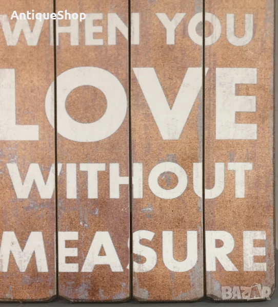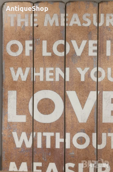 Надпис, табела, дървена, вдъхновяващ, цитат, любов без мярка → Обява 50445165
