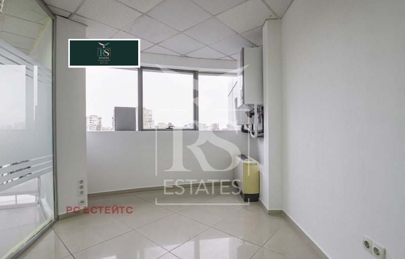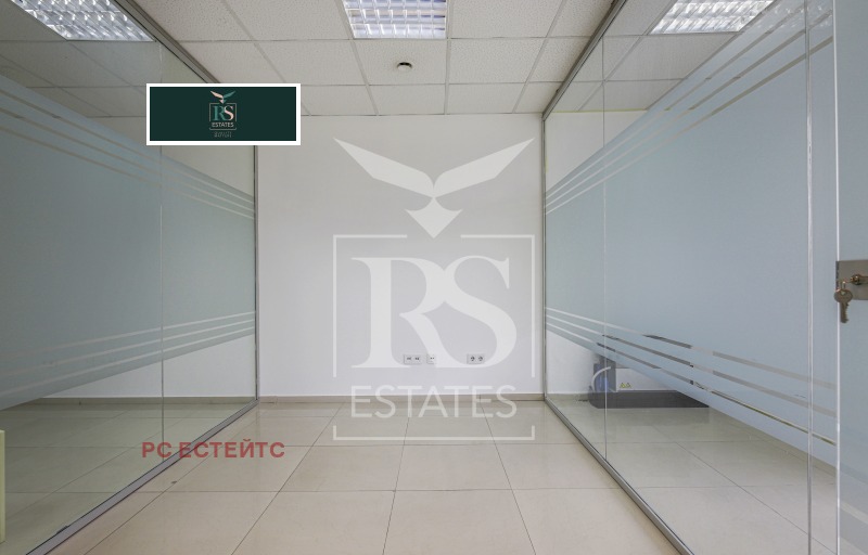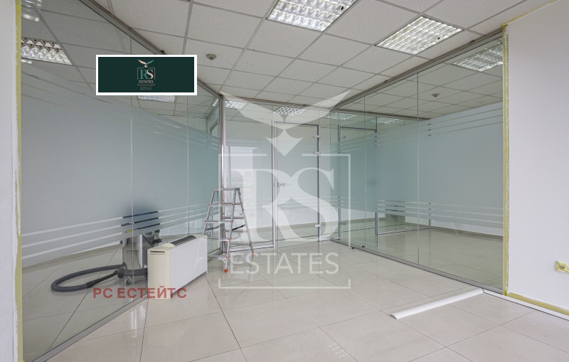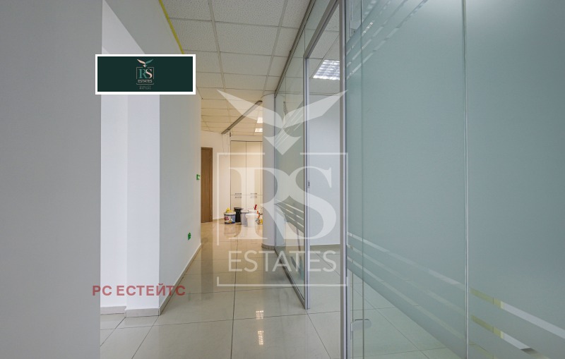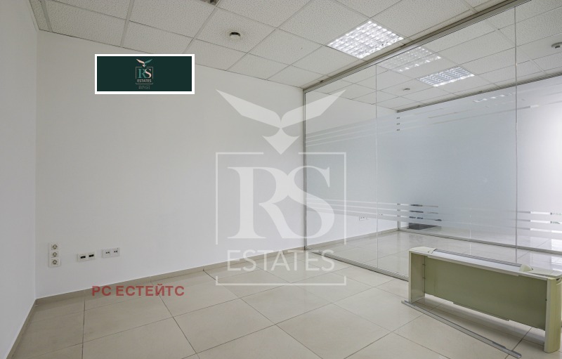 Шест отделни работни помещения преградени със стъклени и гипсокартонени стени, кухня, две тоалетни. Офисът може да бъде изцяло с отворено пространство или допълнително преграден според изискванията на Наемателя.