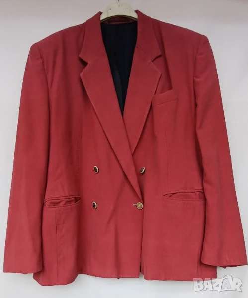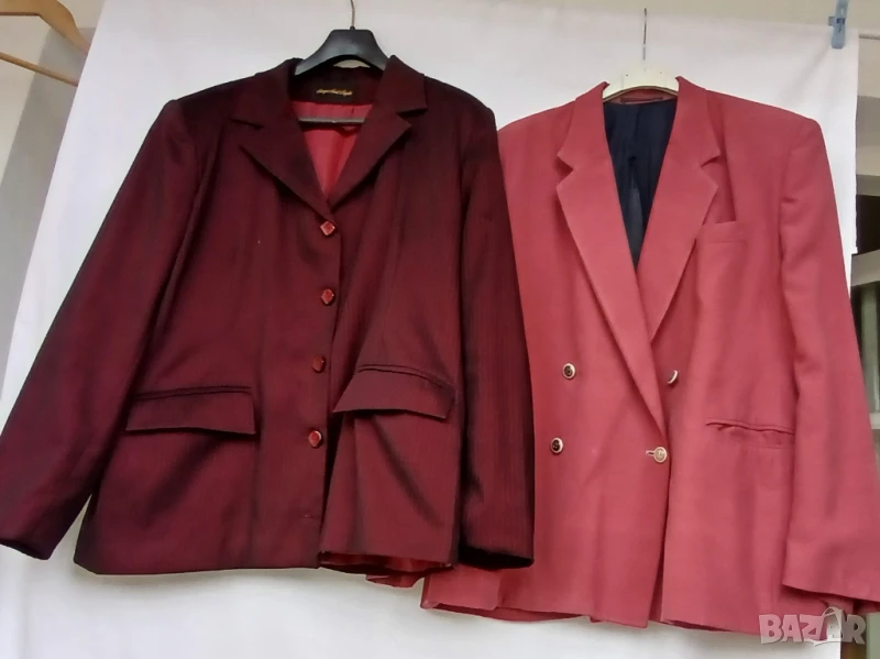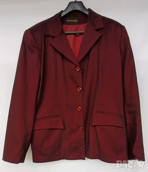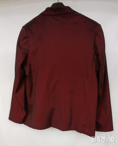 1. Тъмно вишнево сако на дискретни раета. Изработено от еластичен фин плат. Размер L.