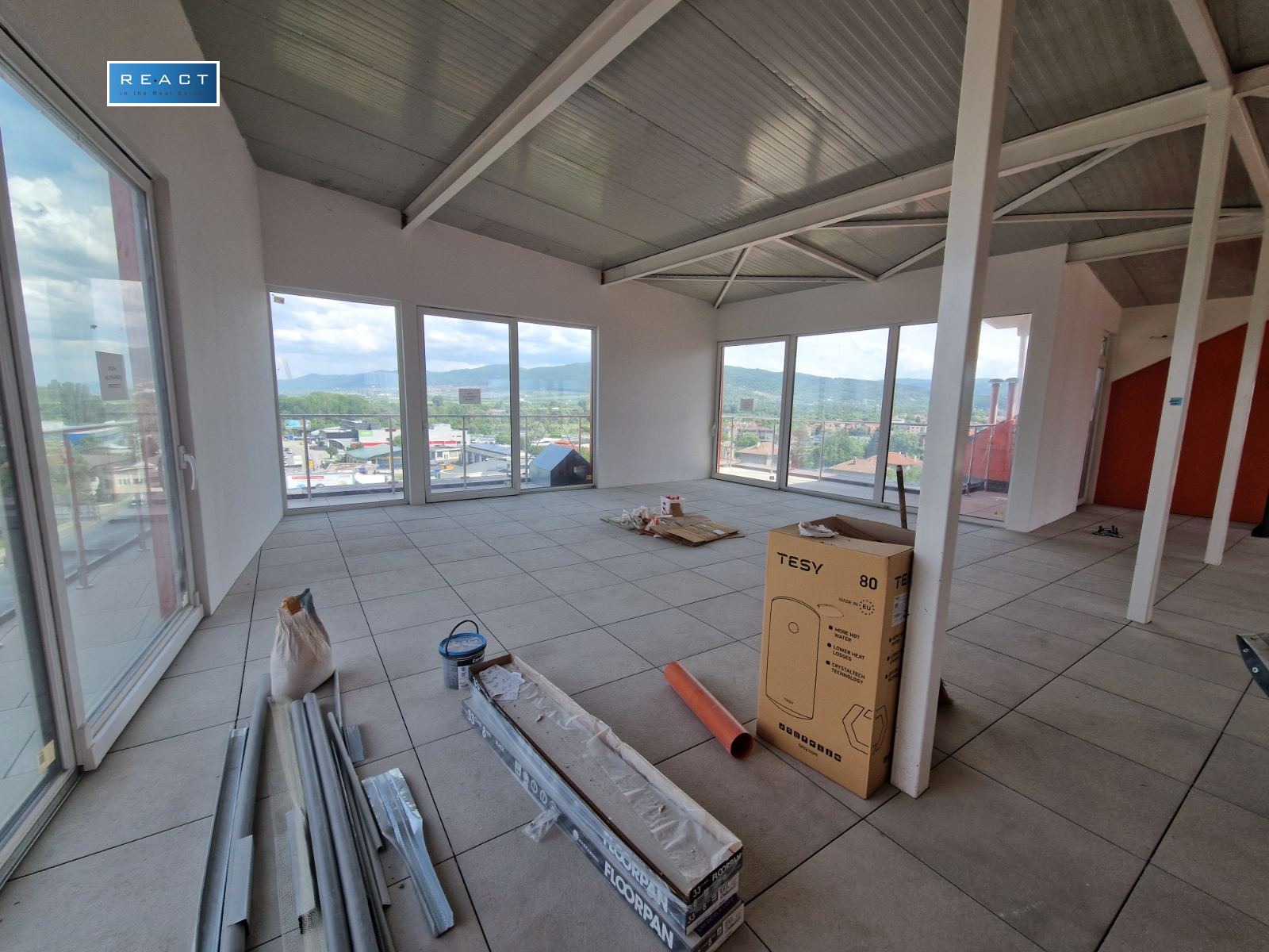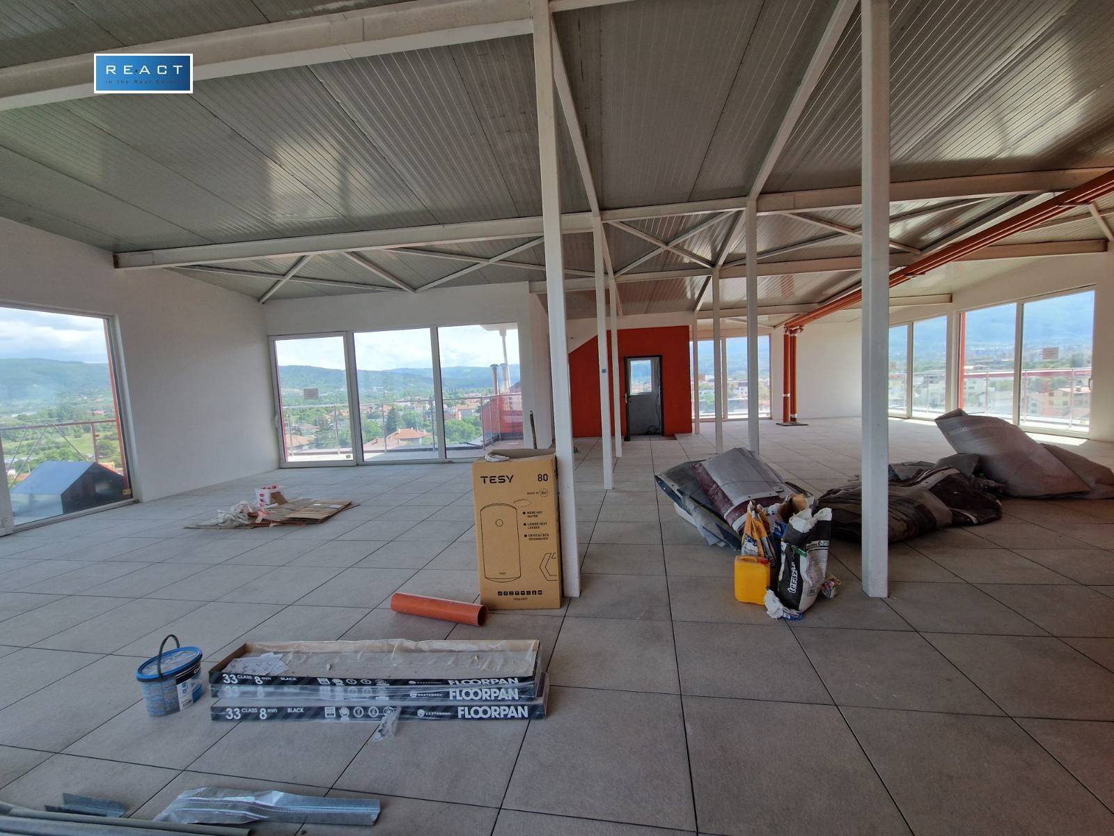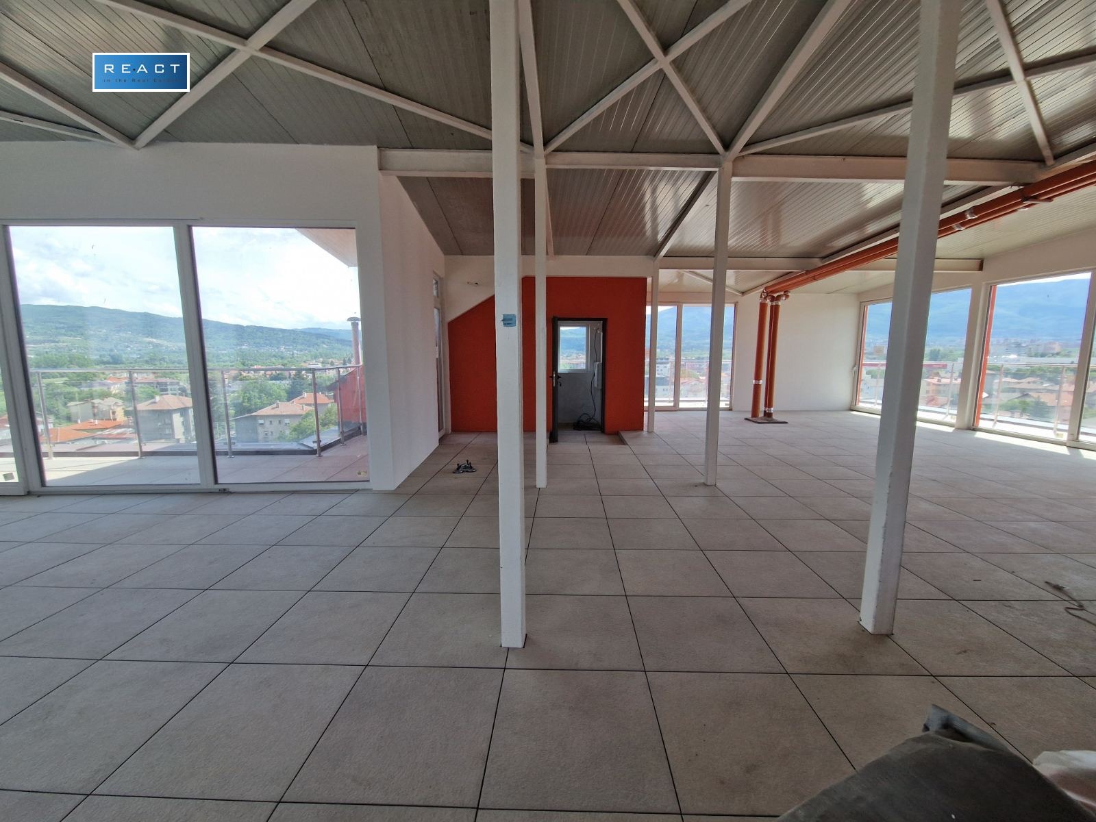 Разпределение: голямо Open space помещение; самостоятелно работно помещение, място за малък кухненски кът, wc, панорамни тераси.