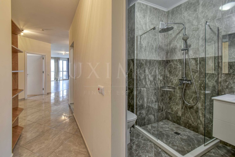 Апартаментът е с площ от 138 кв.м, разположен на пети етаж и предлага добре разпределено вътрешно пространство. Състои се от просторна дневна с кухненски бокс, която създава светла и отпускаща атмосфера, две самостоятелни спални, подходящи за пълноценна почивка, и модерно оборудвани бани. От терасите се разкрива впечатляваща гледка към морето и околната зеленина, създаваща усещане за спокойствие и близост до природата.