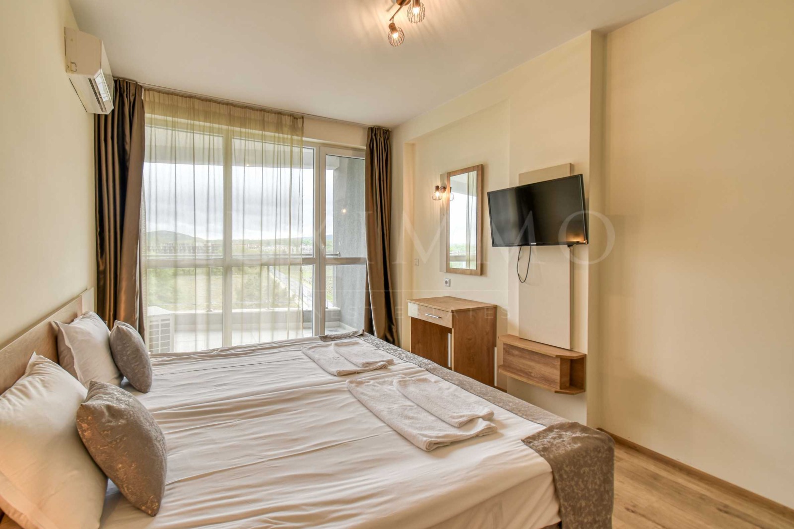 Жилището се продава напълно обзаведено, с внимание към всеки детайл, и е готово за нанасяне или отдаване под наем. Сградата разполага с отлично поддържани общи части, басейн, рецепция и допълнителни удобства, характерни за високия клас на хотела.