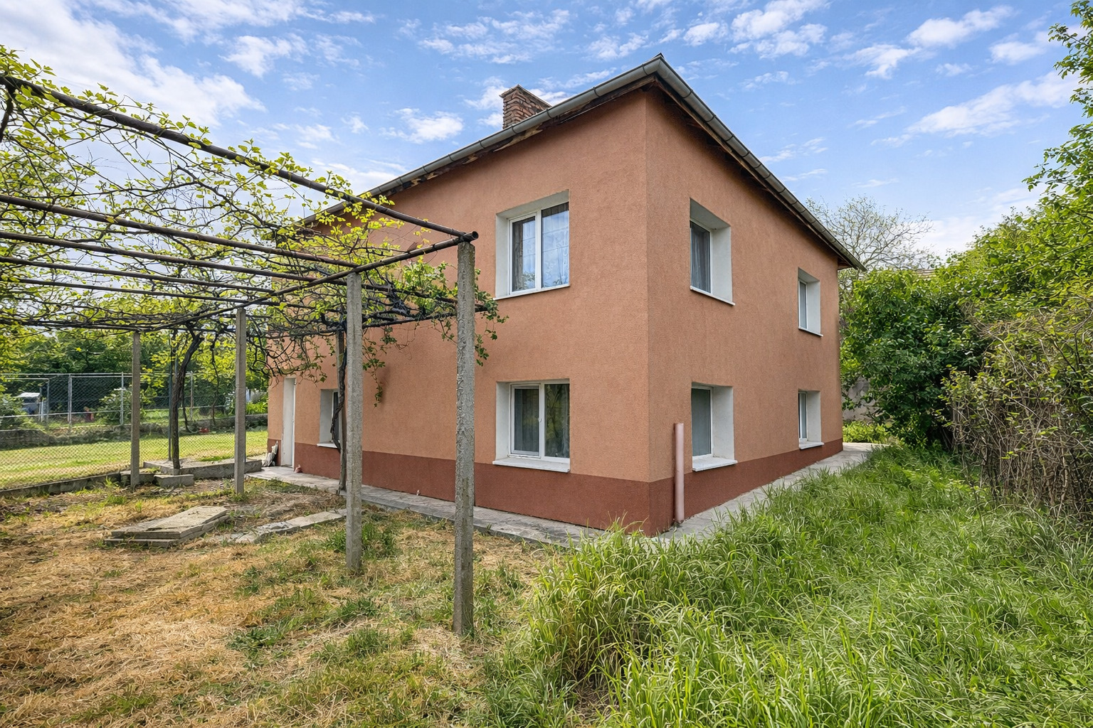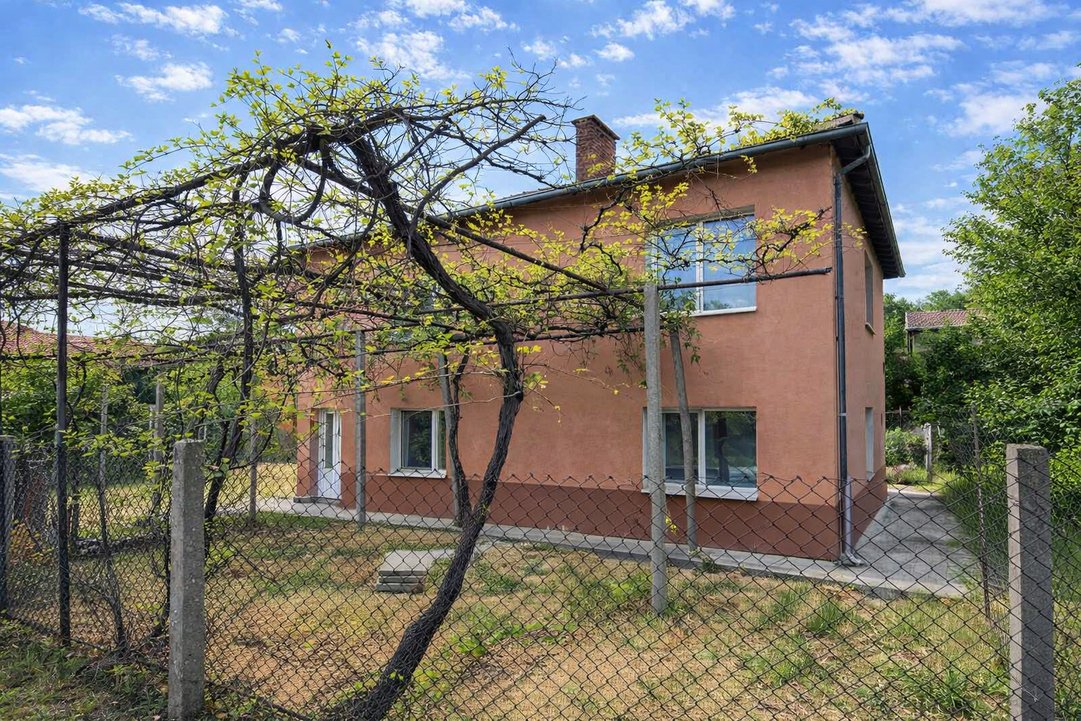 Къщата е изцяло санирана отвън, дограмата е сменена. Имотът разполага с външна и вътрешна изолация, както и е изграден дренаж около къщата.