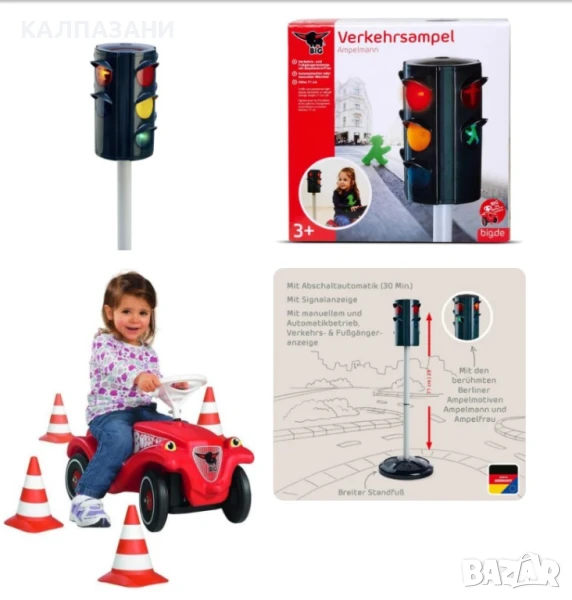 Запознайте се с безопасността на движението по пътя по забавен начин с големия светофар Ampelmann! Идеален за деца над 3 години, симулира поведение на пътя чрез реалистични LED сигнали. Независимо дали е червено, жълто или зелено, в автоматичен или ръчен режим, с Ampelmann и Ampelfrau децата се учат кога е време да продължат напред или да изчакат. Включва стабилна основа и автоматично изключване. Светофарът е с обща височина 71 сантиметра и е винаги видим. Запознайте децата си с правилата за движение по игрив начин!