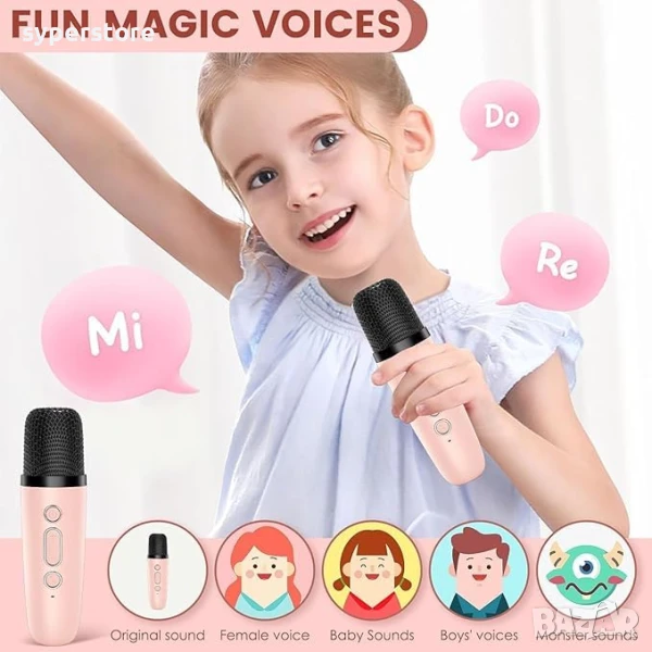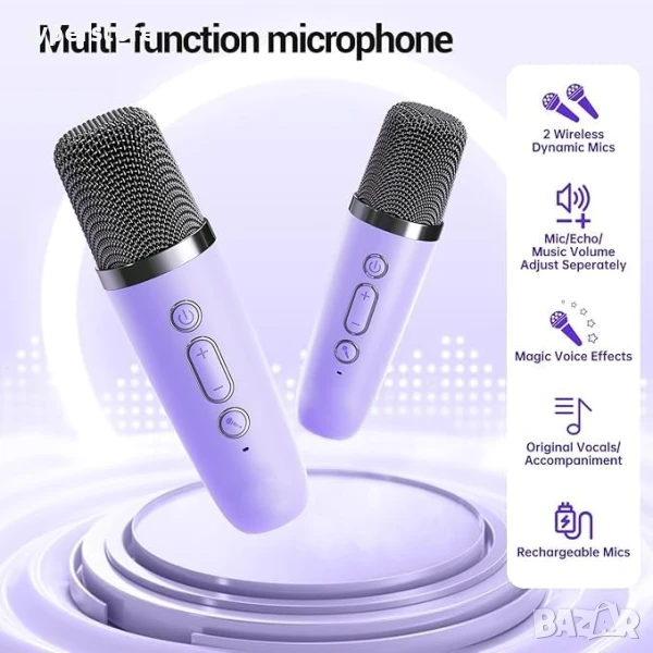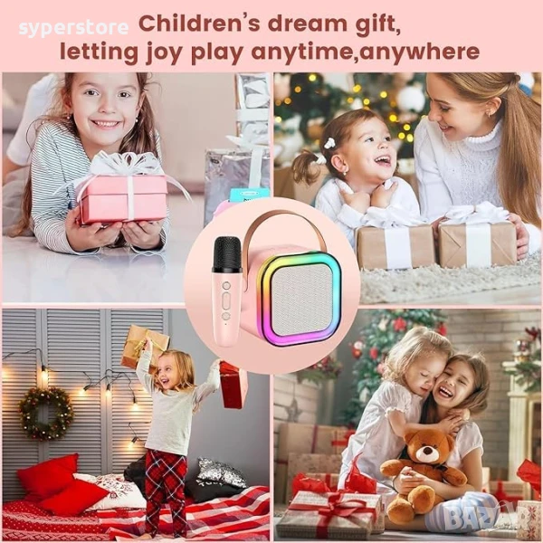 Цветен безжичен Bluetooth 5.3 високоговорител караоке озвучителна система комплект за деца с 2 преносими микрофона, играчки подаръци за момичета и момчета на възраст 3, 4, 5, 6, 7, 8-12 години подарък за рожден ден